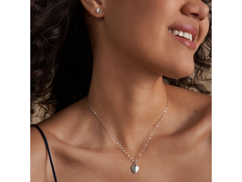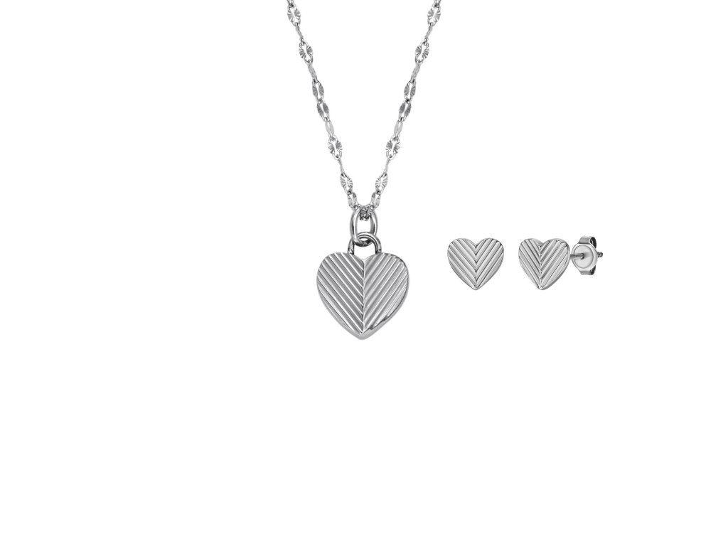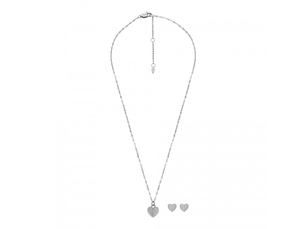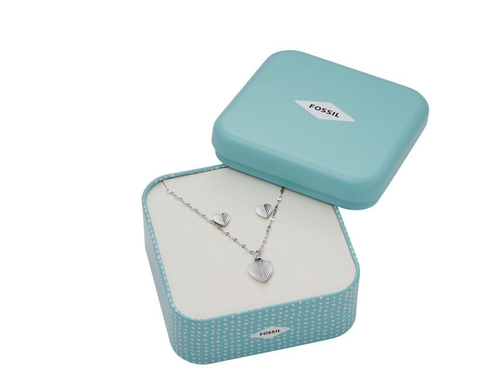 A set of women's jewellery that's easy to fall in love with... Fossil 's designers play with the traditional heart shape, but add a modern touch to the necklace and earrings thanks to the attractive texture.