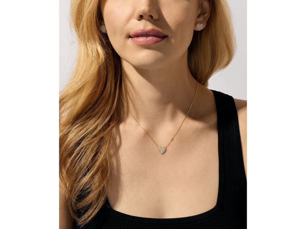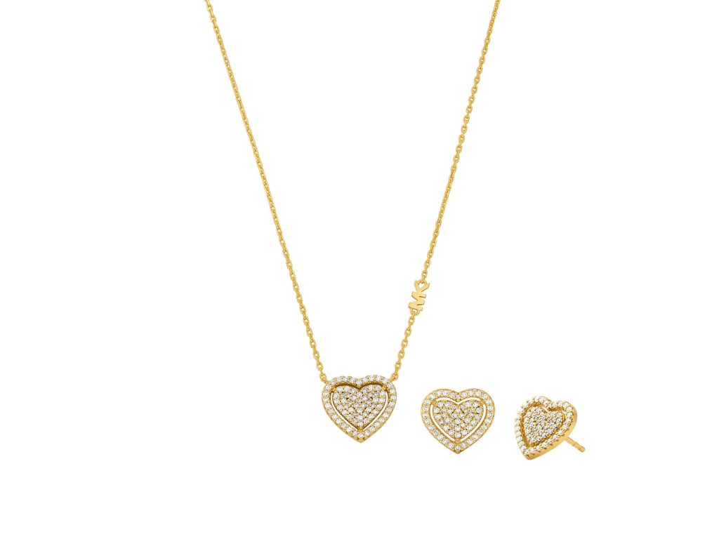 The necklace has an adjustable length of 38–43 cm, and the earrings, measuring 1.08 × 1.15 cm, fasten comfortably with a post. The combination of gold-plated silver and zircons creates a timeless set that beautifully highlights the feminine style and romantic character of the Michael Kors brand. The weight of the jewellery is 10 g.