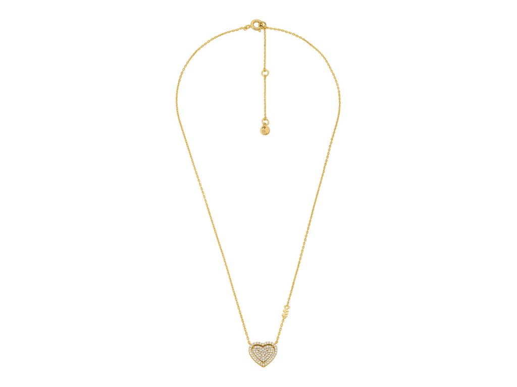 The Michael Kors women's jewellery gift set combines elegance and romance in the form of a delicate necklace and heart-shaped earrings. The jewellery, made from genuine 925/1000 silver, is precisely gold-plated, giving it a luxurious gold colour that creates a charming impression.