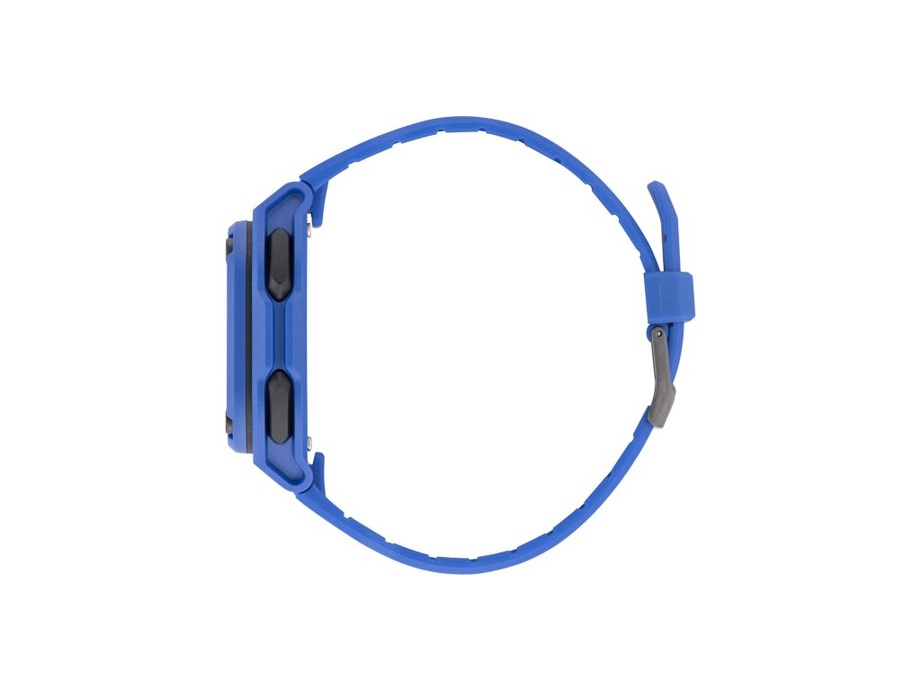 The Adidas City Tech One AOST23061 unisex digital watch stands out with its robust design and contrasting combination of a black display and a blue silicone strap. The square plastic case adds a distinctive dynamic to the model.