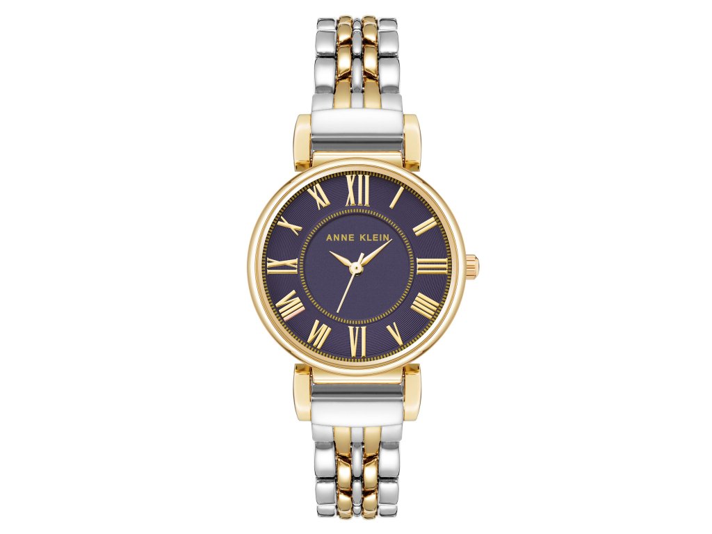 The modern watch Anne Klein AK/2159NVTT enchants with a combination of a gold and silver bracelet and a dark blue dial with Roman numerals , which adds depth and style to the whole. Ideal for women who appreciate elegance and versatility in every detail.