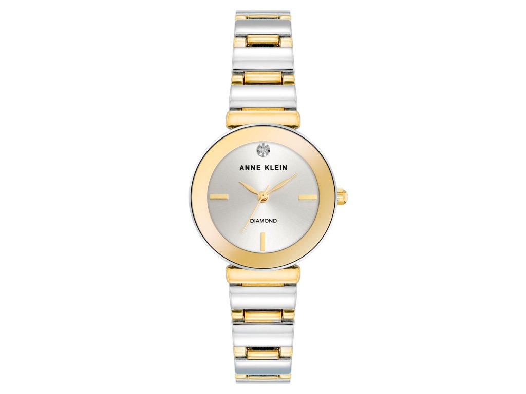 Anne Klein watches combine simplicity, elegance and a jewellery accent. The silver dial is adorned with a diamond at the twelve o'clock position, which creates a delicate and luxurious feel.