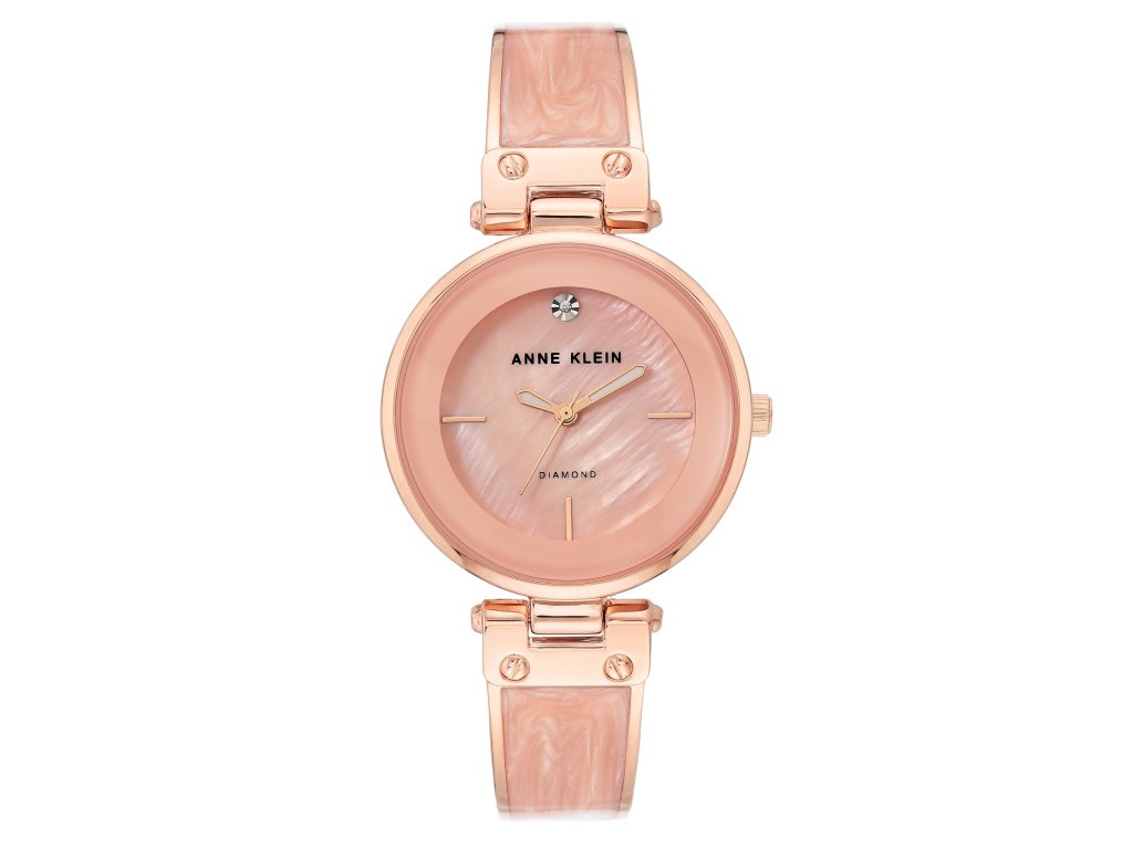 Anne Klein watches in a uniform rose gold tone captivate with their purity and feminine charm. The dial adorned with a diamond at the twelve o'clock position adds a subtle, jewellery-like sparkle to the model.