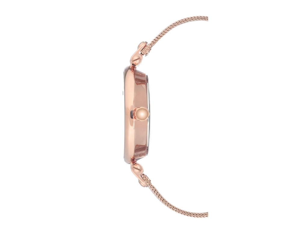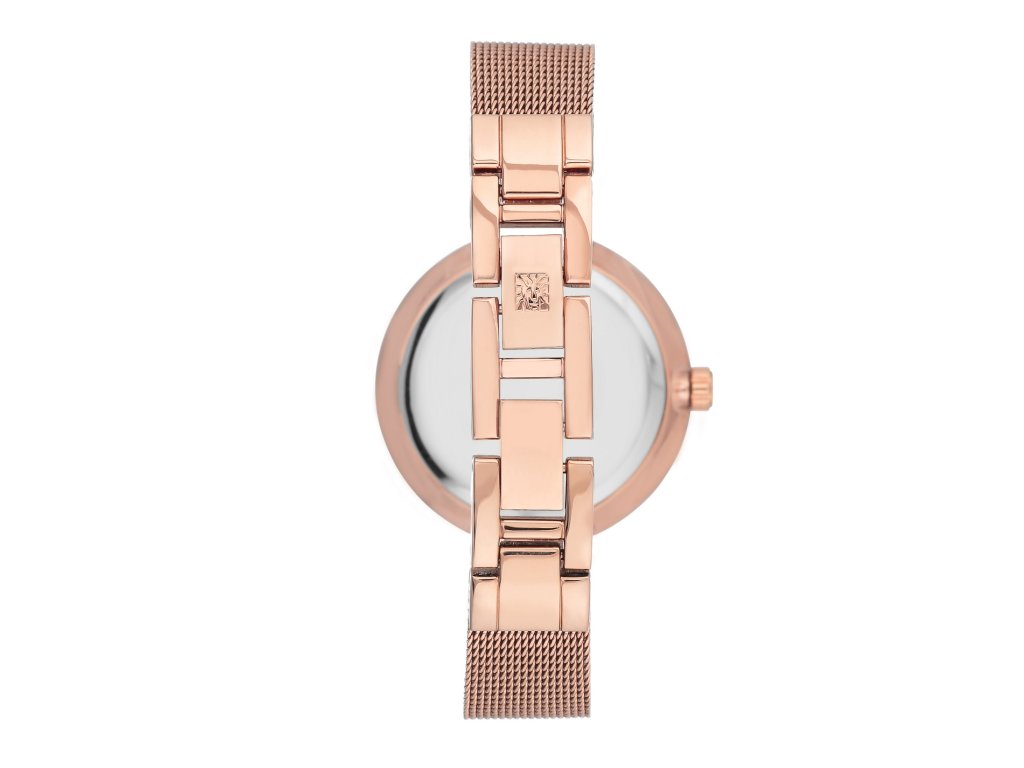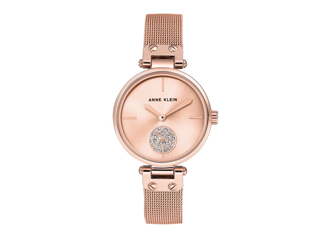 The Anne Klein watch in a solid rose gold tone looks elegant and feminine. The dial, matching the colour of the bracelet and case, is set with crystals that add a subtle sparkle and a jewellery-like appearance without being overly ostentatious.