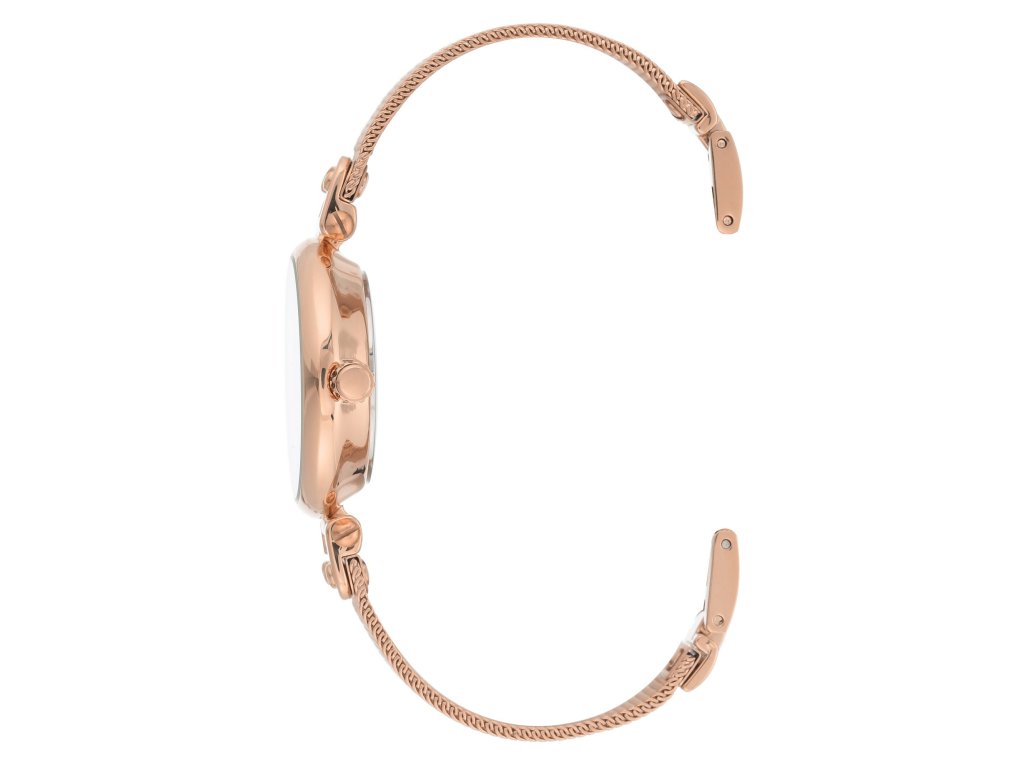 This Anne Klein women's set combines a watch and jewellery in one elegant piece. The rose gold dial adorned with crystals is matched with the case and metal bracelet, while the included bracelet complements the look with another stylish element.