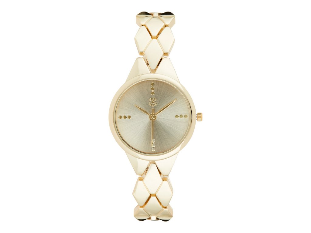 The gold-colored metal bracelet seamlessly connects to the round case, emphasizing the harmonious and stylistically coordinated whole. The dial completes the uniform visual impression and highlights the jewelry-inspired design. The model is equipped with a precise Quartz movement and protected by mineral glass.