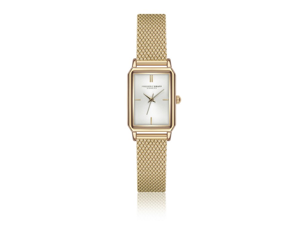 Subtle elegance in a gold tone. Frederic Graff FDT-3414 women's watch impresses with a harmonious combination of a white dial and gold finish. The angular case gives the watch a modern shape, while the delicate steel strap emphasizes its feminine character.