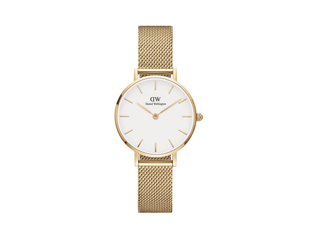 A modern touch of white dial combined with a gold coloured strap. This is the Petite Emerald watch from Daniel Wellington. Made of polished stainless steel and designed for everyday wear, they reflect the idea of finding beauty in the little things. The watch's clean design is complemented by a 28 mm case.Additional parameters
