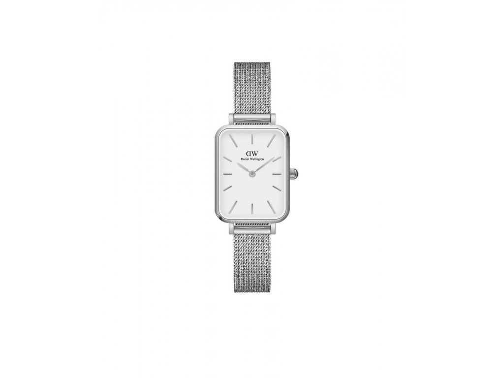 Distinctive white dial combined with a mesh metal strap. This is the Quadro Pressed Melrose, Daniel Wellington's first watch with a square dial. Made of polished stainless steel in silver tones. The clean design of the watch is complemented by an elegant case measuring 20x26 mm.Additional parameters