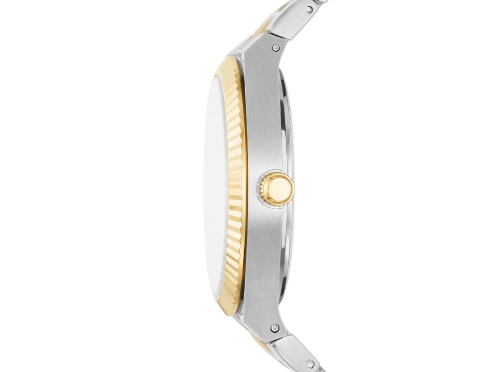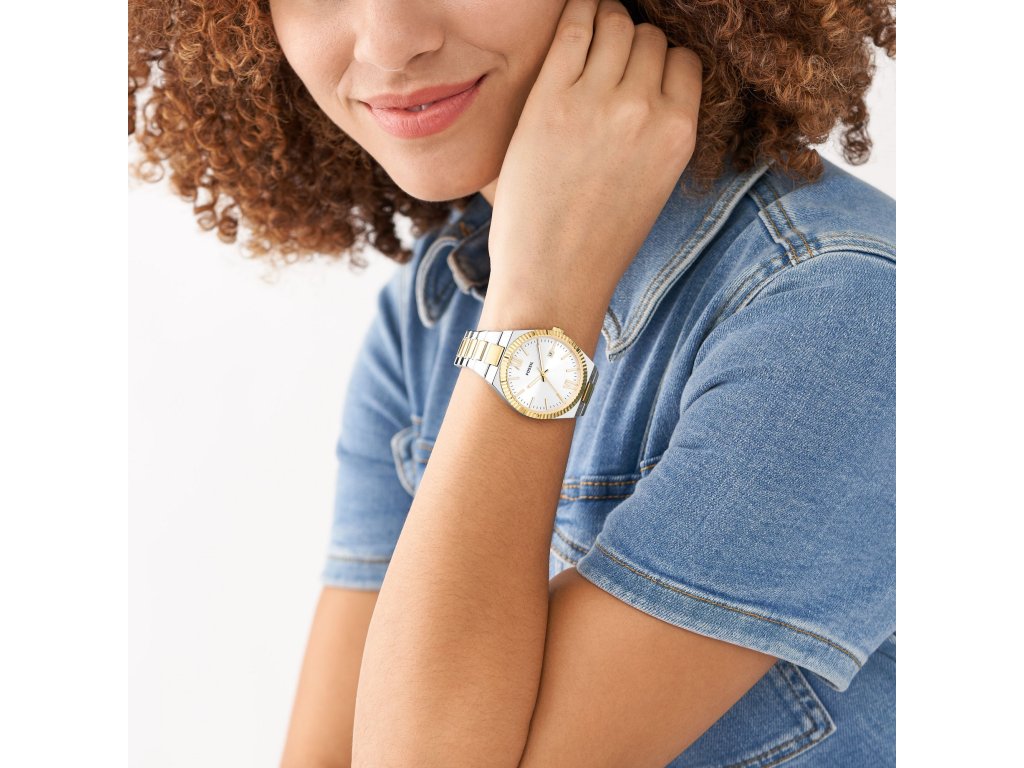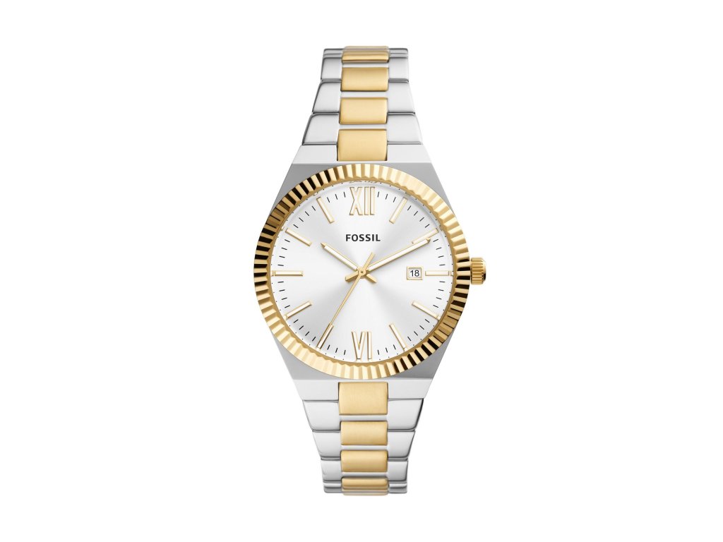 The stylish Fossil watch will stand out on your wrist for every occasion. With the Scarlette model, which stands out with the pattern on the case, you can be sure of that. The combination of gold and silver and the fine workmanship of this watch will add a touch of elegance to your outfit.