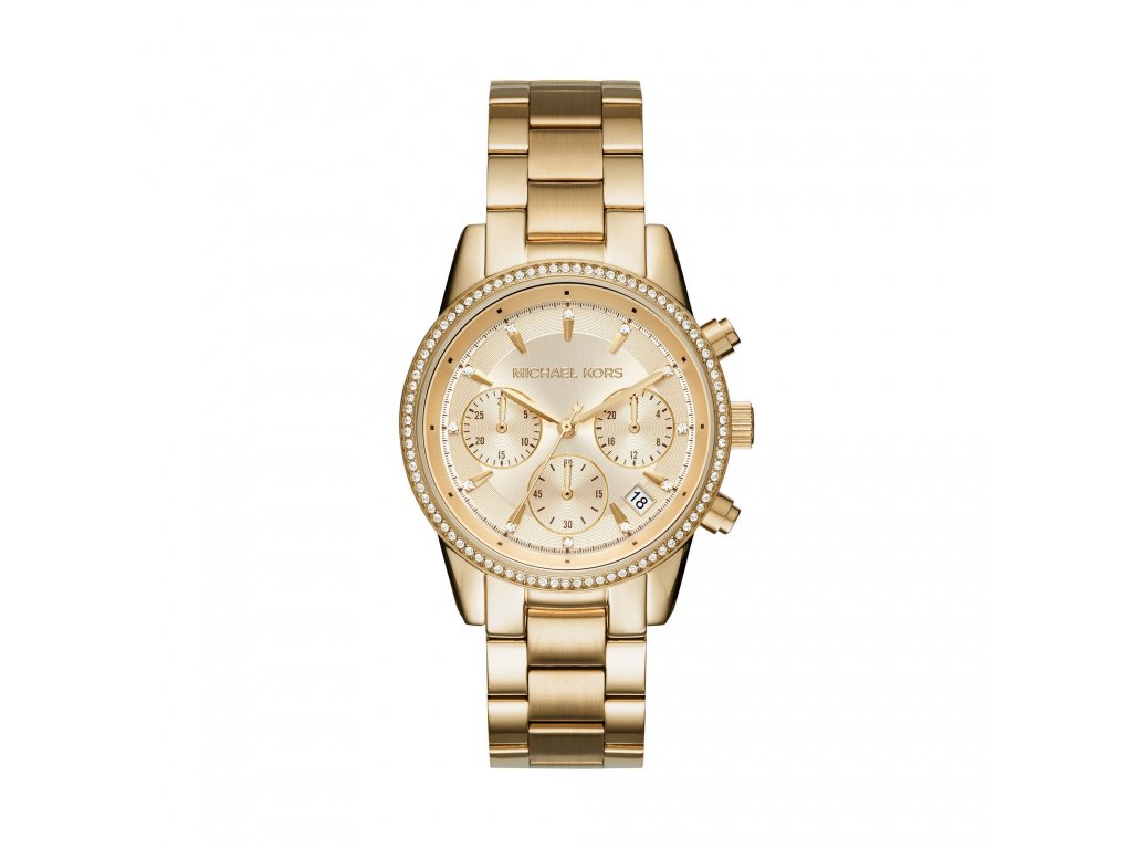 The jewel-style Ritz watch by Michael Kors for women fulfils everything you expect from it. The golden colour and crystals add a touch of refinement to the watch. This fashionable piece will simply accentuate your style in the most elegant way.