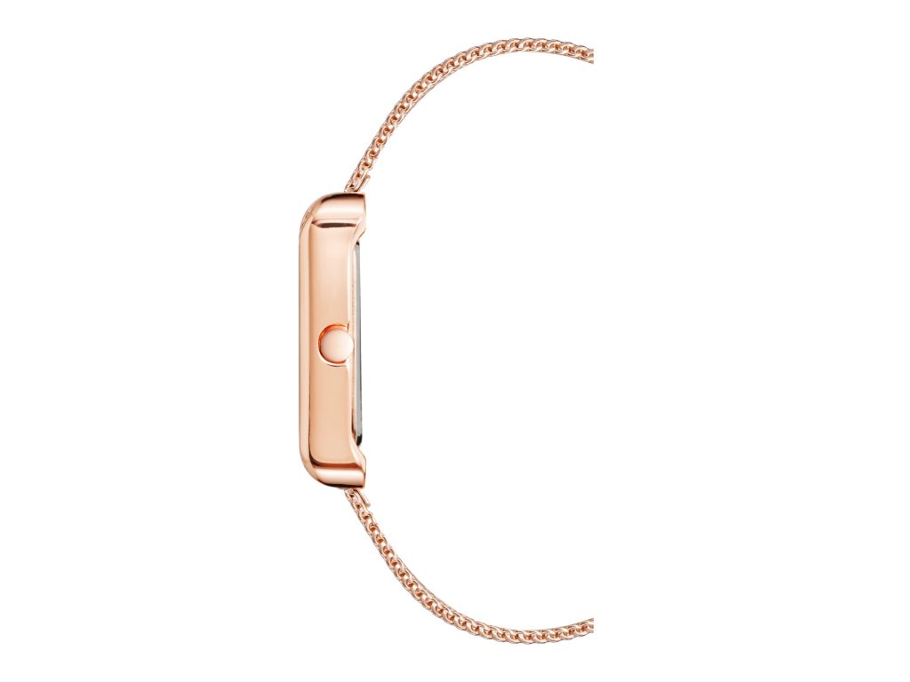 The watch is powered by a high-quality Quartz movement and protected by mineral glass. The metal Milanese mesh strap connects to the square metal case, creating an elegant accessory for everyday wear and special occasions.