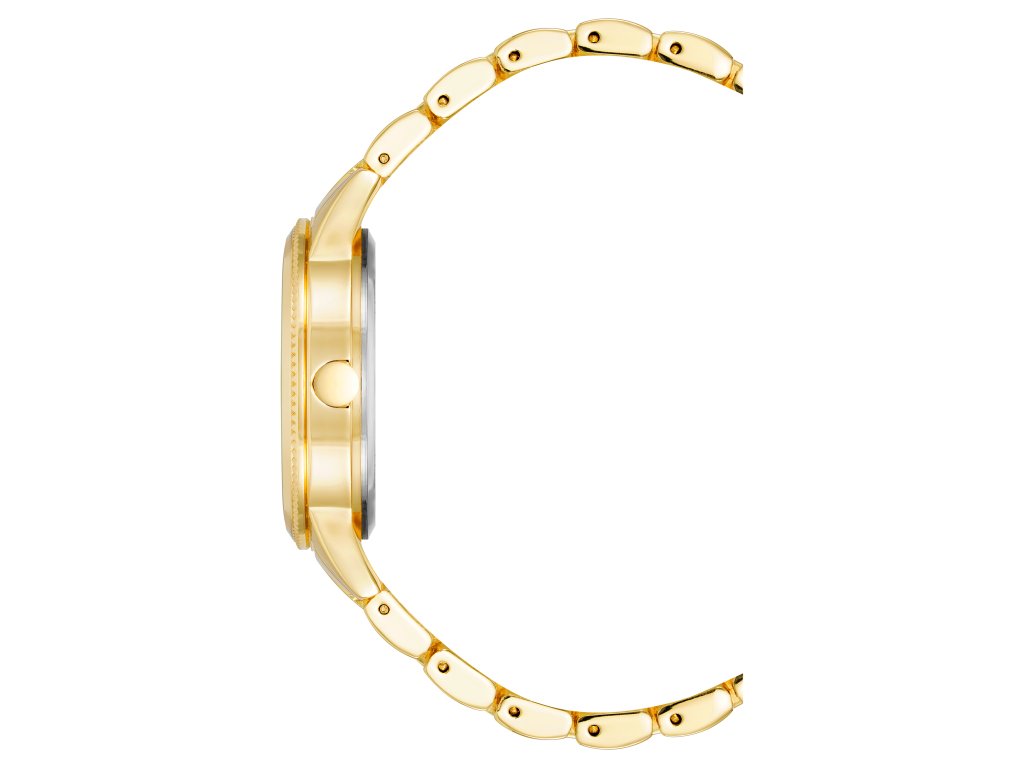 The gold dial without numerals is complemented by matching hands and clean details, which look elegant and subtle. The round metal case and gold-tone bracelet create a timeless look that is easy to match with any outfit.