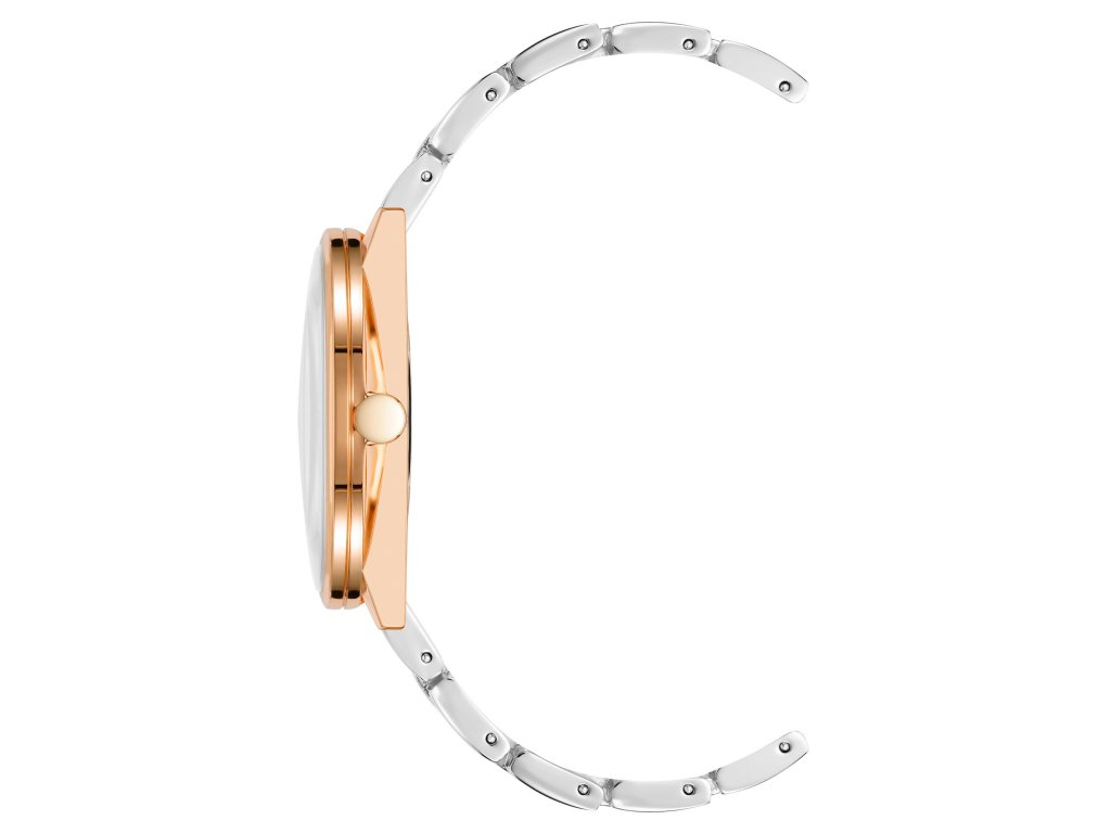 Ladies' elegant silver watch with a circular dial in dark grey, which is complemented by line indices in rose gold.Additional parameters