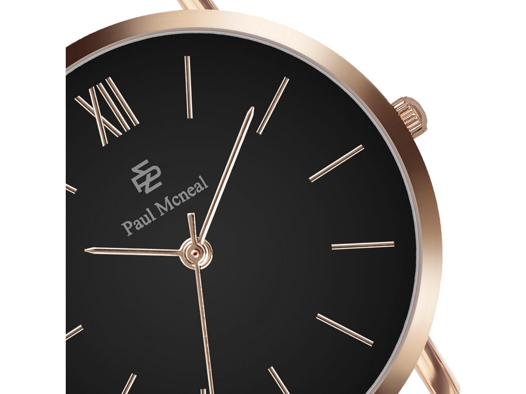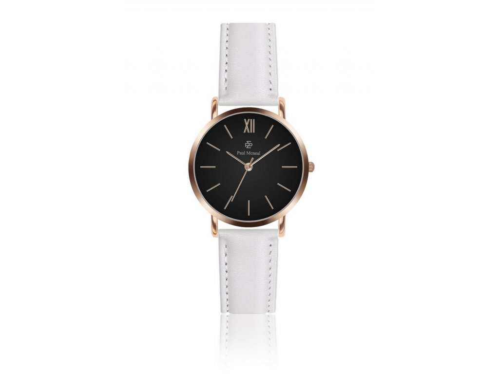 Classic, elegance and uncomplicated island style meet in the Rose Black White Leather ladies' watch. They will become your indispensable accessory for every occasion. The sophistication of the watch is added by the black dial, which uses a classic analogue display with Roman numerals. The rose gold-tone case has a diameter of 36 mm and is protected by a durable mineral glass. A white strap made of high-quality leather adds elegance and a minimalist touch to the watch. Of course, the watch features a Japanese quartz movement, synonymous with precision and long battery life. Discover other pieces from Paul McNeal, a British brand with an island heritage and style.Be the first who will post an article to this item!