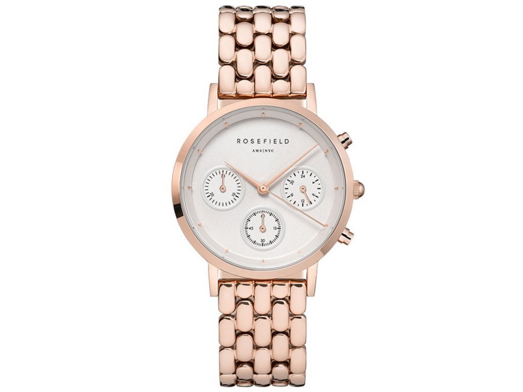Rosefield Gabby Chronograph in rose gold tone combines classic style with functional elegance – a watch that adds flair to any outfit.