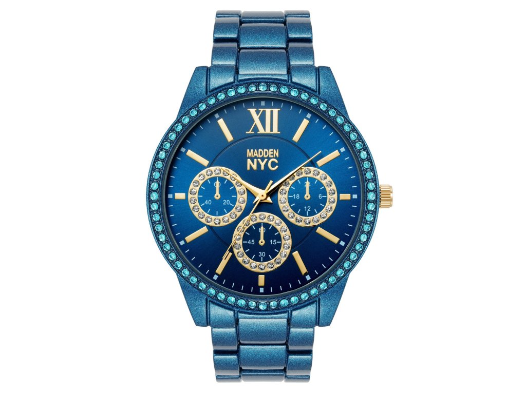 Women's watches from the Steve Madden brand combine stylish elegance, modern sparkle, and perfectly matched blue tones. The uniform color scheme complemented by crystals on the case and dial creates a striking piece of jewelry that will add a confident and fashionable look to any outfit.