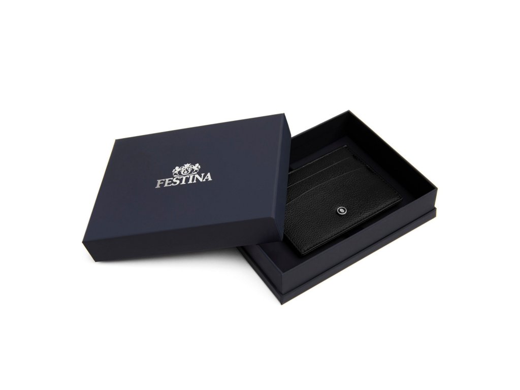The men's card holder Festina Button is crafted from carefully selected genuine leather with a finely grained texture. The stylish detail of a metal plate inspired by the watch crown and the Festina emblem adds a distinctive and elegant look to the holder.