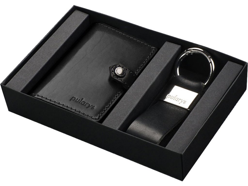 Pularys gift set men's leather wallet Hiker and key chain black 211314101