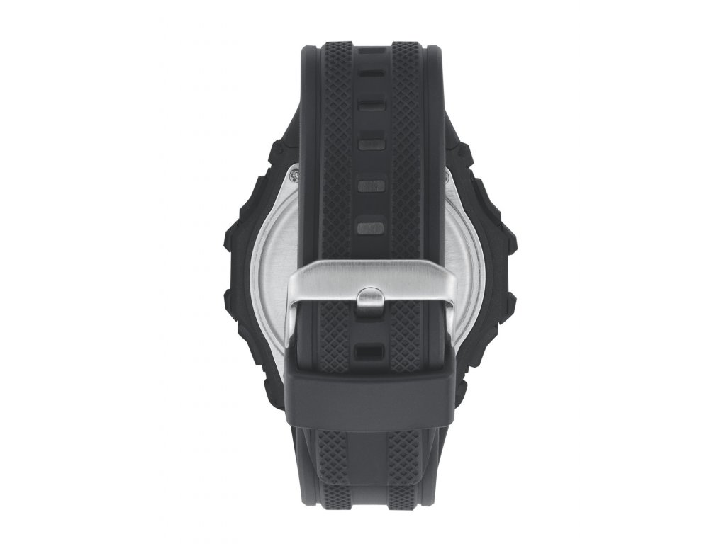 Sporty men's Armitron watch in black with multifunction display and red tones.Additional parameters