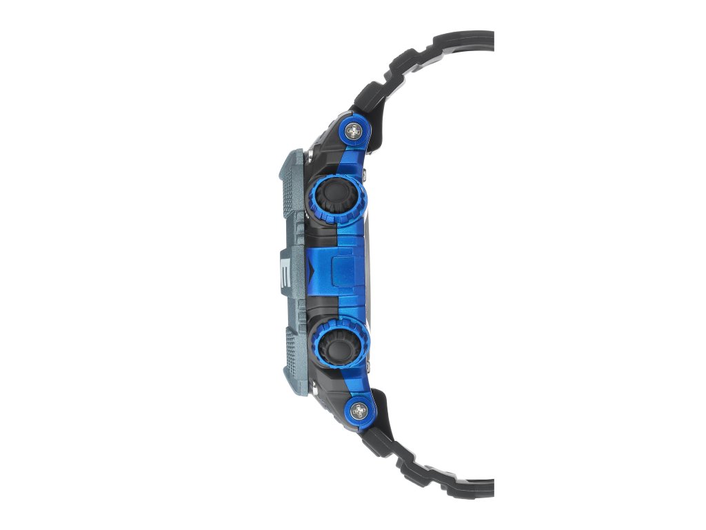Sports digital watch with turquoise lunette, white and blue markers.Additional parameters