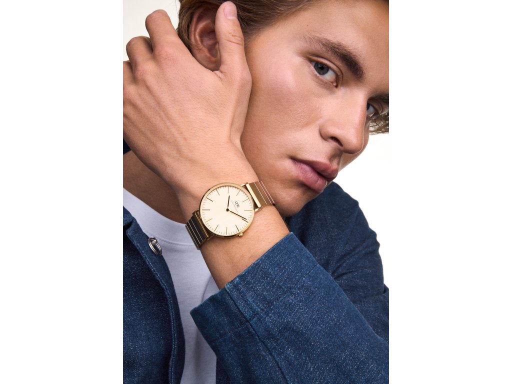 Delicate gold finish, clean elegant lines and an exclusive brushed steel look in the new edition of the Classic men's watch from Daniel Wellington.