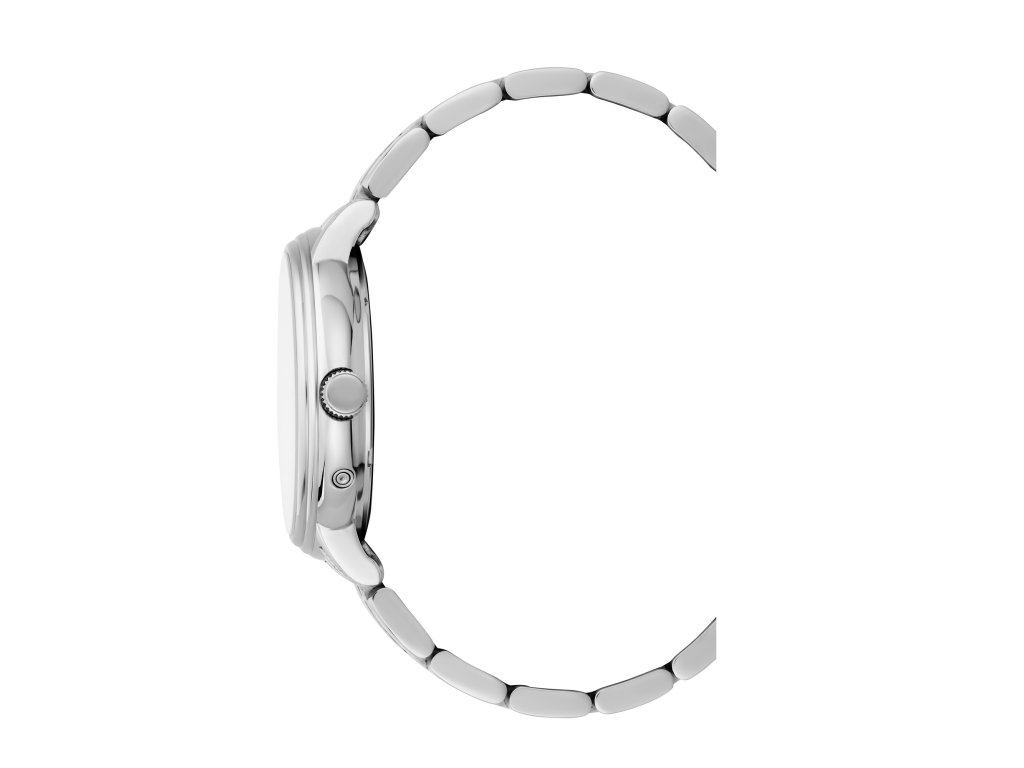 The watch's minimalist, modern design combines with the elegance of high-quality stainless steel to make it very durable. The sapphire crystal is scratch and shock resistant. The silver-coloured dial is stylishly decorated with two chronographs showing the day and the month. There is also a seconds hand.Additional parameters