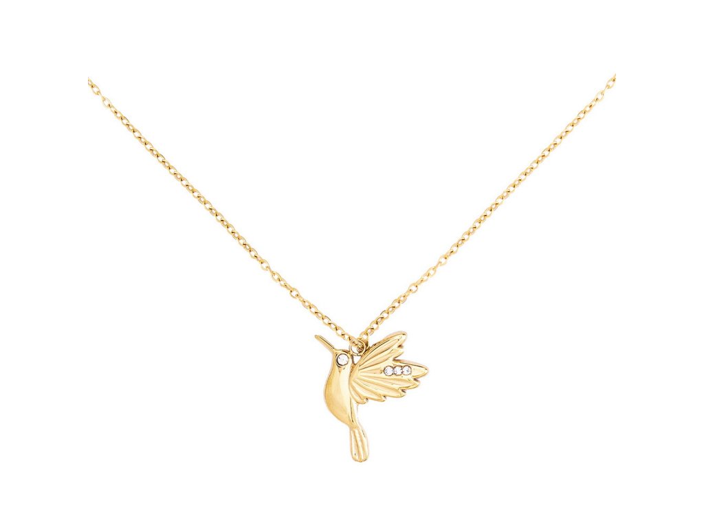The necklace is made of high-quality stainless steel in gold color, ensuring durability and comfort during wear. The diamond set in the hummingbird motif enhances its sophisticated look. The Como Milano design combines modern minimalism with Italian attention to detail.
