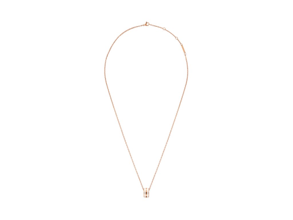 A delicate chain with rose gold plating together with a distinctive circular pendant adorns the neck of a woman or girl with refined elegance.Additional parameters