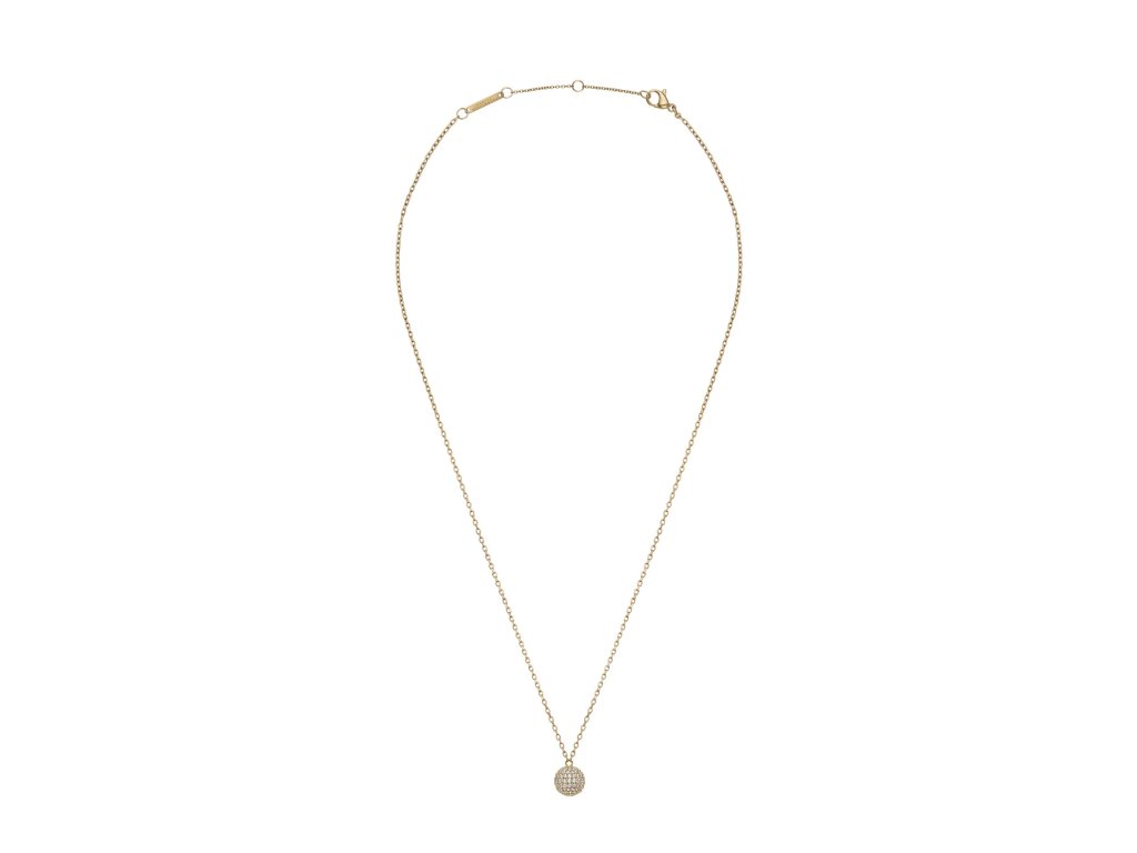 Decent Pavé Crystal necklace will win you over with its delicate elegance and playfulness. A tiny chain on which is suspended a sphere-shaped pendant set with c ubic zirconia crystals will be a faithful addition to both your work costume and leisure outfits. The pendant sparkles beautifully in the light and its reflections will catch many an eye.
