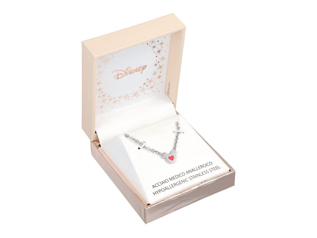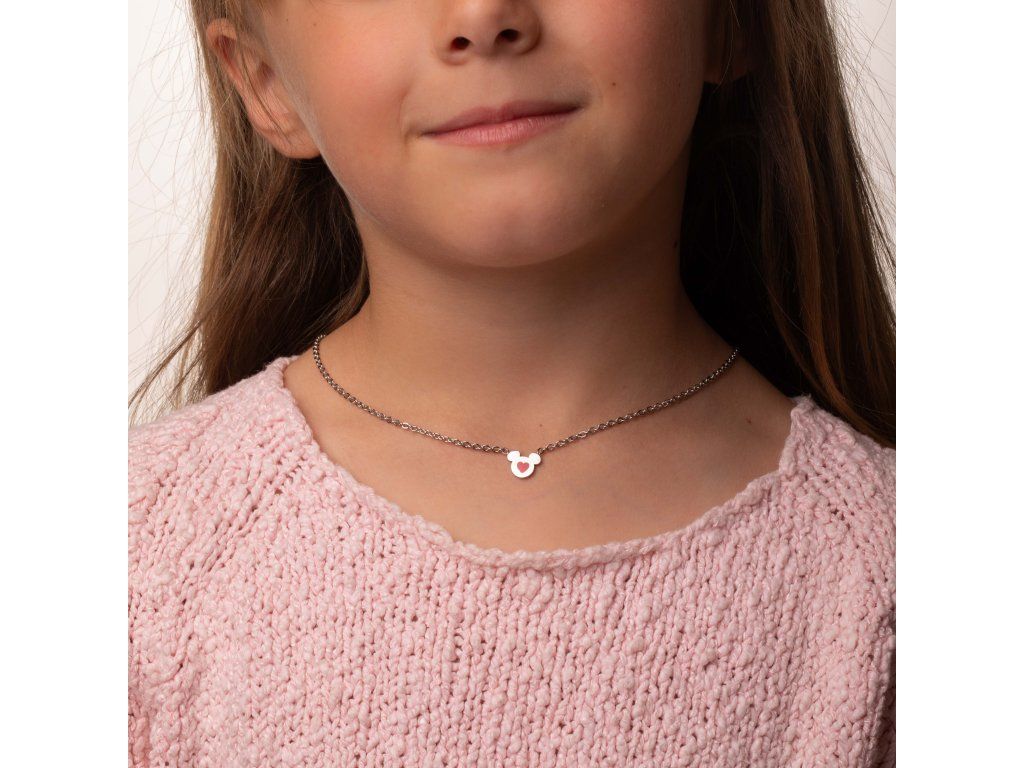 Kids' necklace with a Mickey Mouse head charm will delight all little lovers of iconic Disney motifs. Red enamel highlights the characteristic details and gives the jewelry a cheerful and playful look.