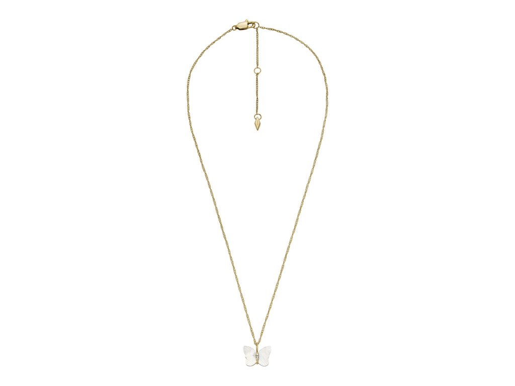 The jewellery as a gift stands out with its delicate butterfly motif, which symbolizes freedom, transformation and beauty. Fine mother-of-pearl gives the Fossil Sutton Radiant Wings piece of jewelry a natural shimmer that sparkles with every movement.