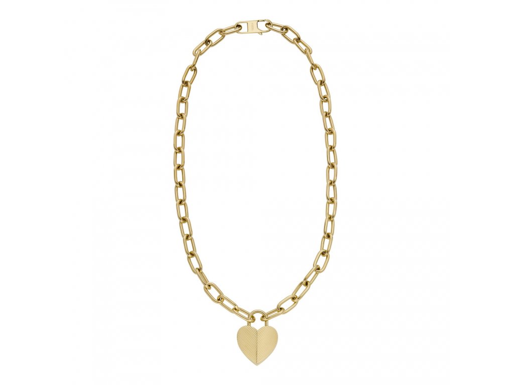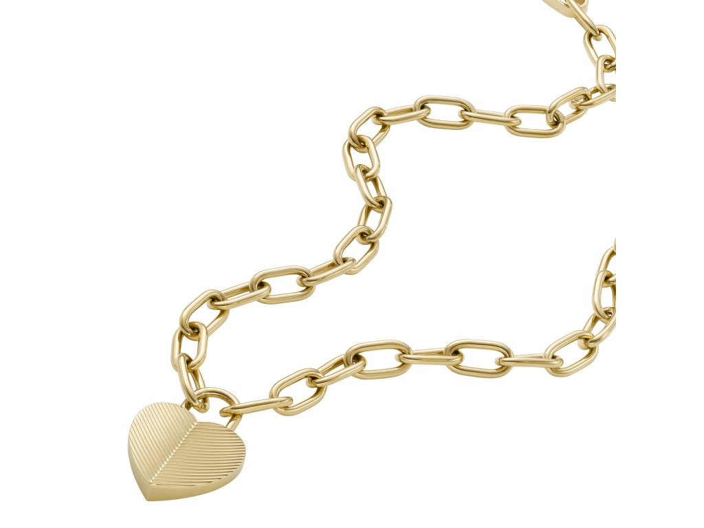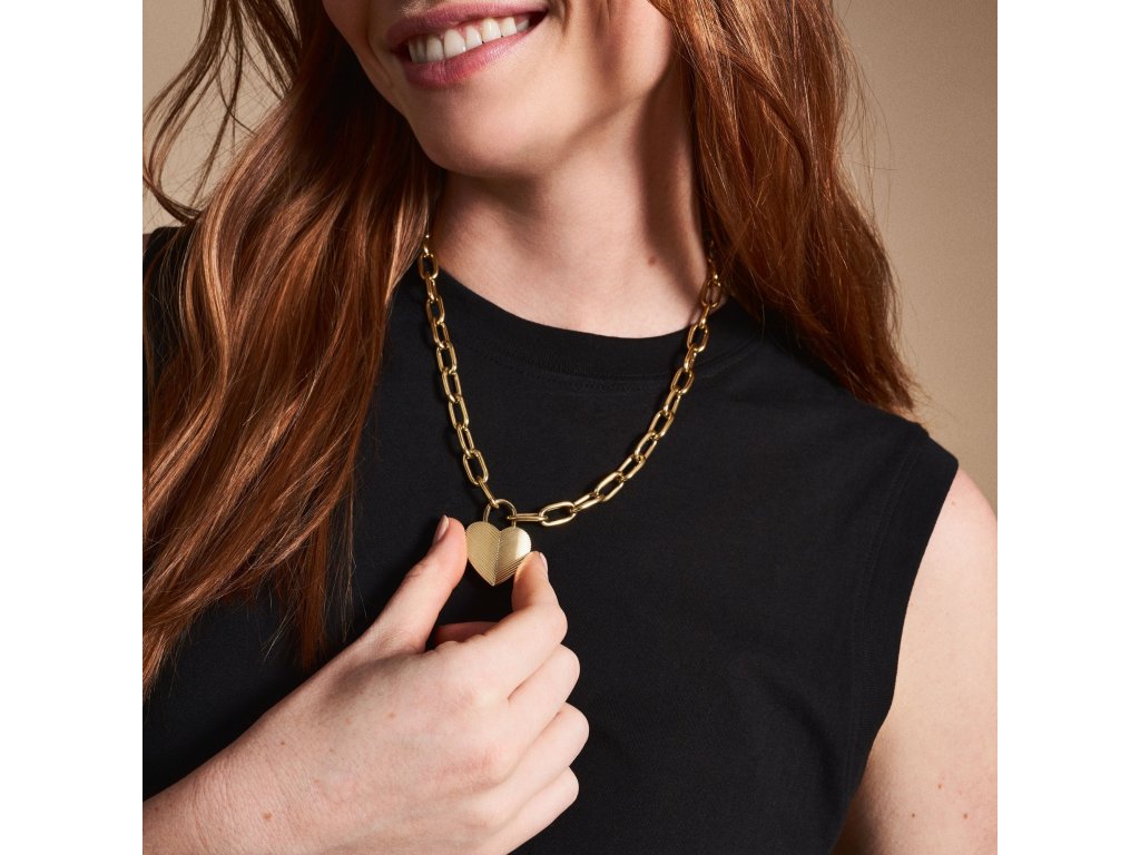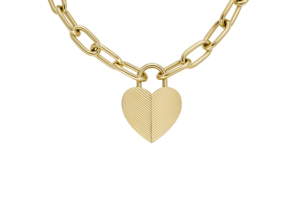 The Harlow necklace is made of stainless steel, which is gold plated. Its base consists of a chain in the design of a massive chain, which is decorated with a heart-shaped pendant. The heart has an attractive texture, so it will attract even women who do not like a primordial design. The overall style of the jewellery is fine-tuned by the carabiner clasp.