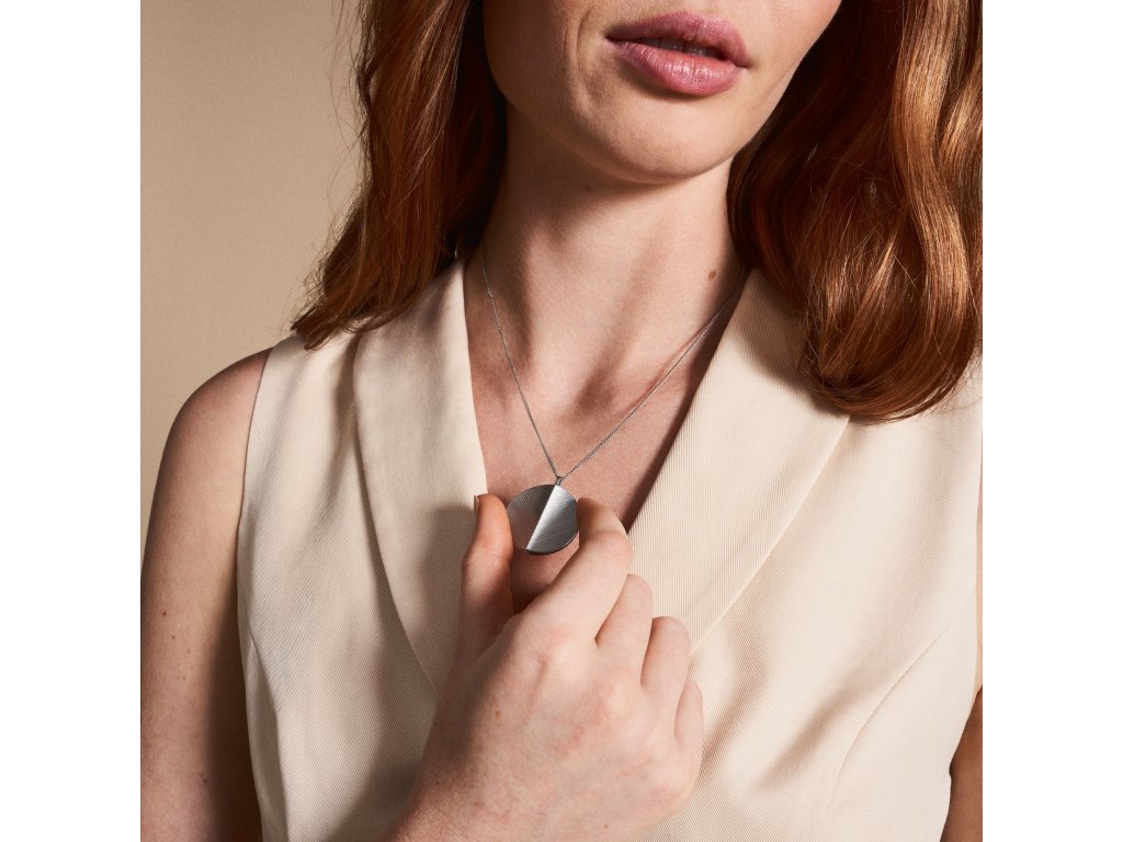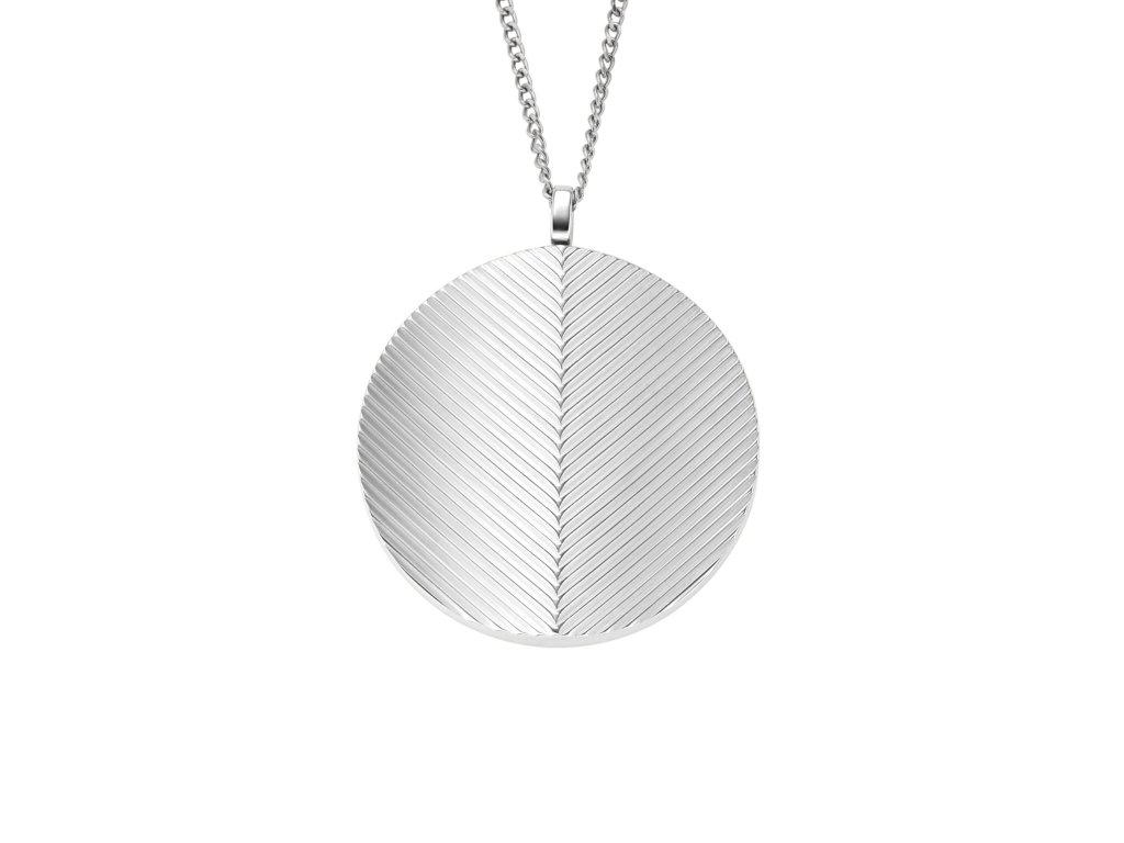 The ultimate talisman with a touch of elegance, hiding a unique memory. This is a necklace from Fossil with a fancy linear texture in which you can place your favorite photo.