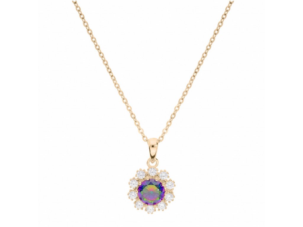 The necklace is made of 925/1000 sterling silver and complemented by gold plating, which gives it a warm golden hue. The dominant element is a rainbow cubic zirconia crystal, sensitively complemented by clear crystals. Thanks to the adjustable length of 41–44 cm, it is comfortable to wear and easily adapts to different styles and necklines. The weight of the jewelry is 3.4 g.