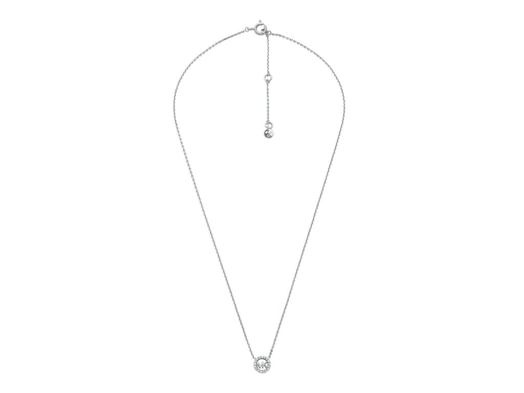 The necklace is made of silver. The chain in an attractive design is crowned with an ornament with the MK logo, which is decorated around the perimeter with sparkling cubic zirconia crystals. The shine of silver and crystals make the necklace a luxurious accessory that will literally enhance your style. The jewel is made of 925 silver and weighs 2g.