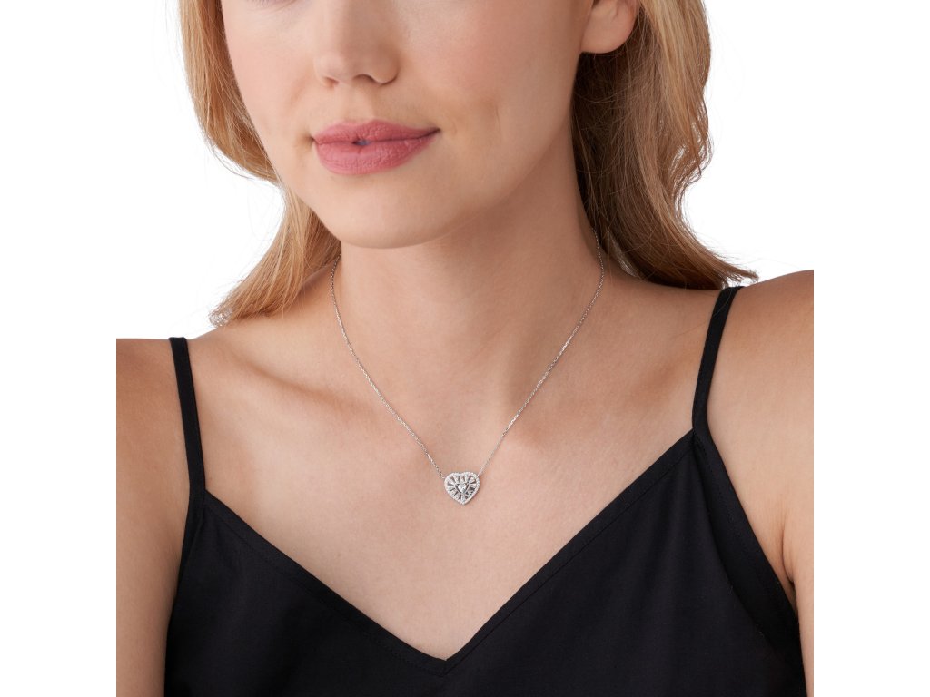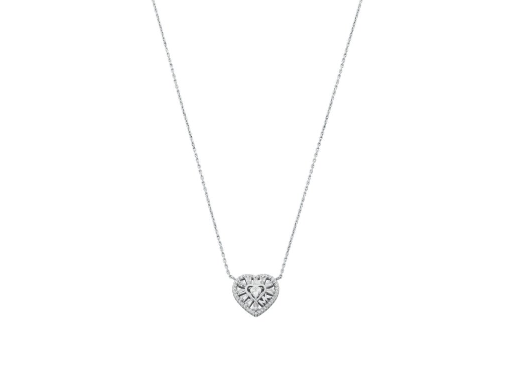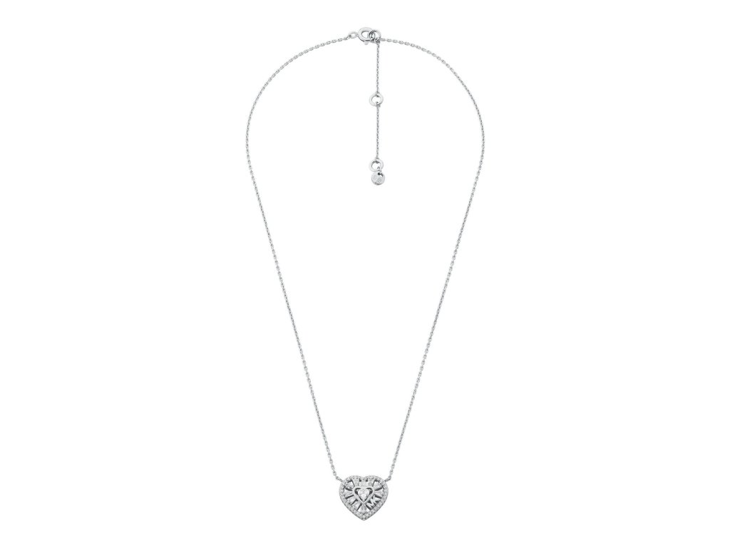 Elegant, sophisticated and extremely feminine, this silver Michael Kors heart necklace is for women who appreciate ornate accessories full of details.