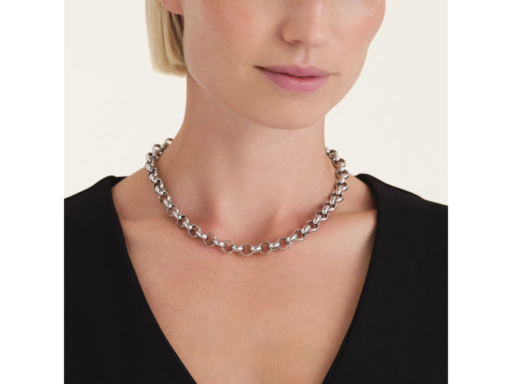 The women's "chunky chain" necklace from the brand Rosefield attracts attention with its distinctive design and sturdy round links.