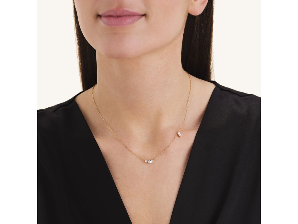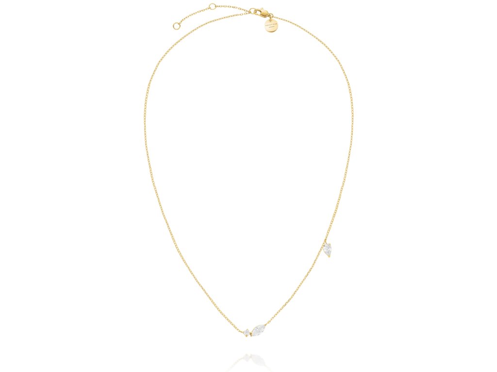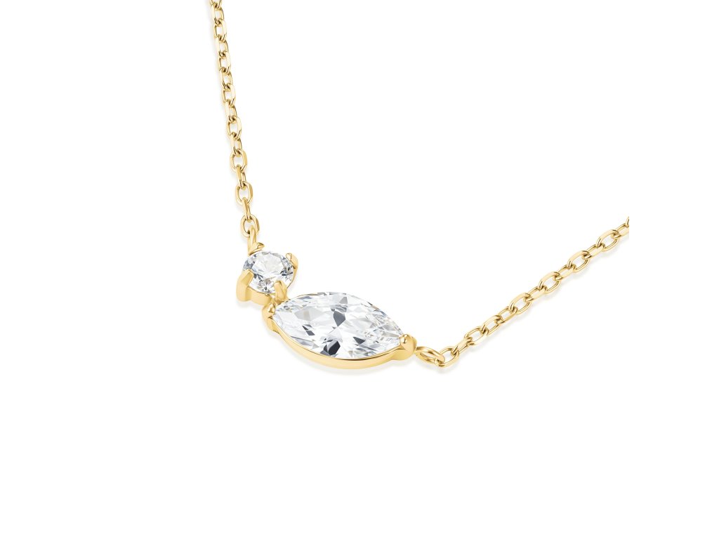 Gold-plated stainless steel with a polished finish gives the jewelry a clean and luxurious look, while the delicately set crystals appear light and airy. The necklace is designed to stand out beautifully on its own, but can also be combined with other delicate pieces of jewelry.