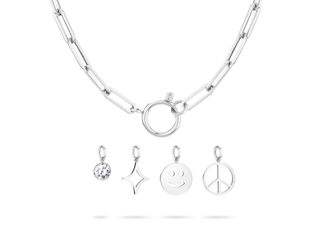 Extravagant ladies necklace from the German brand Tamaris contains four different pendants and one of them is set with a clear cubic zirconia. What is interesting is the ability to detach the pendants, allowing the necklace to be customized and worn with different styles. It is thus suitable for any occasion.