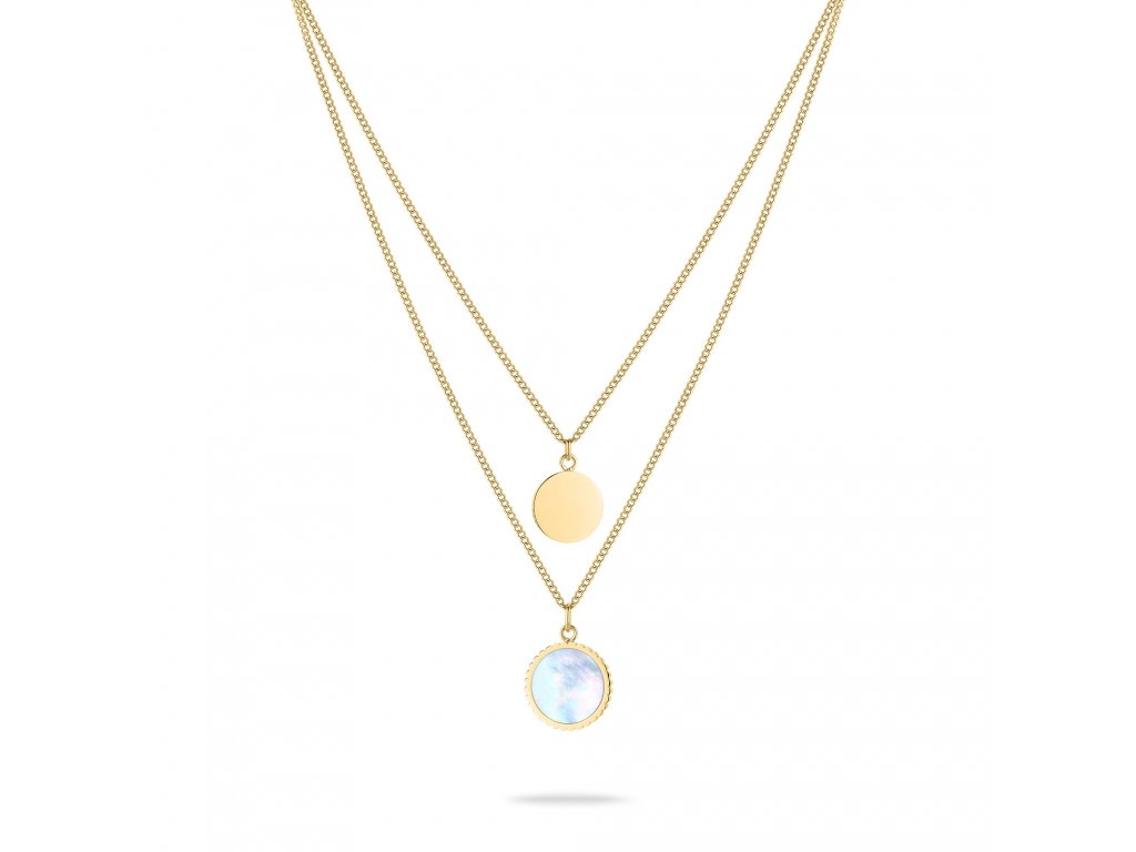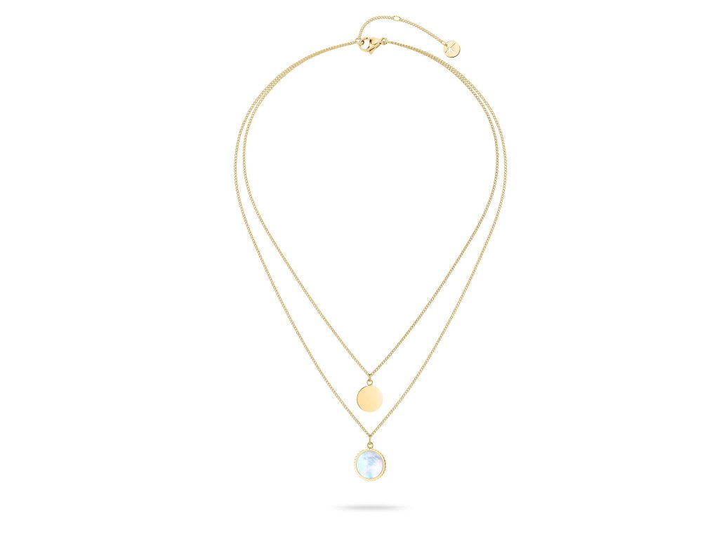 Stylish ladies necklace from the German brand Tamaris consists of two chains. The shorter one is a minimalist penny, the longer one is set with a beautiful pearl.