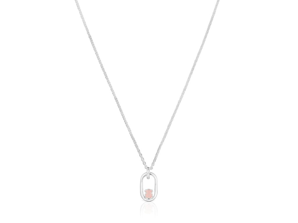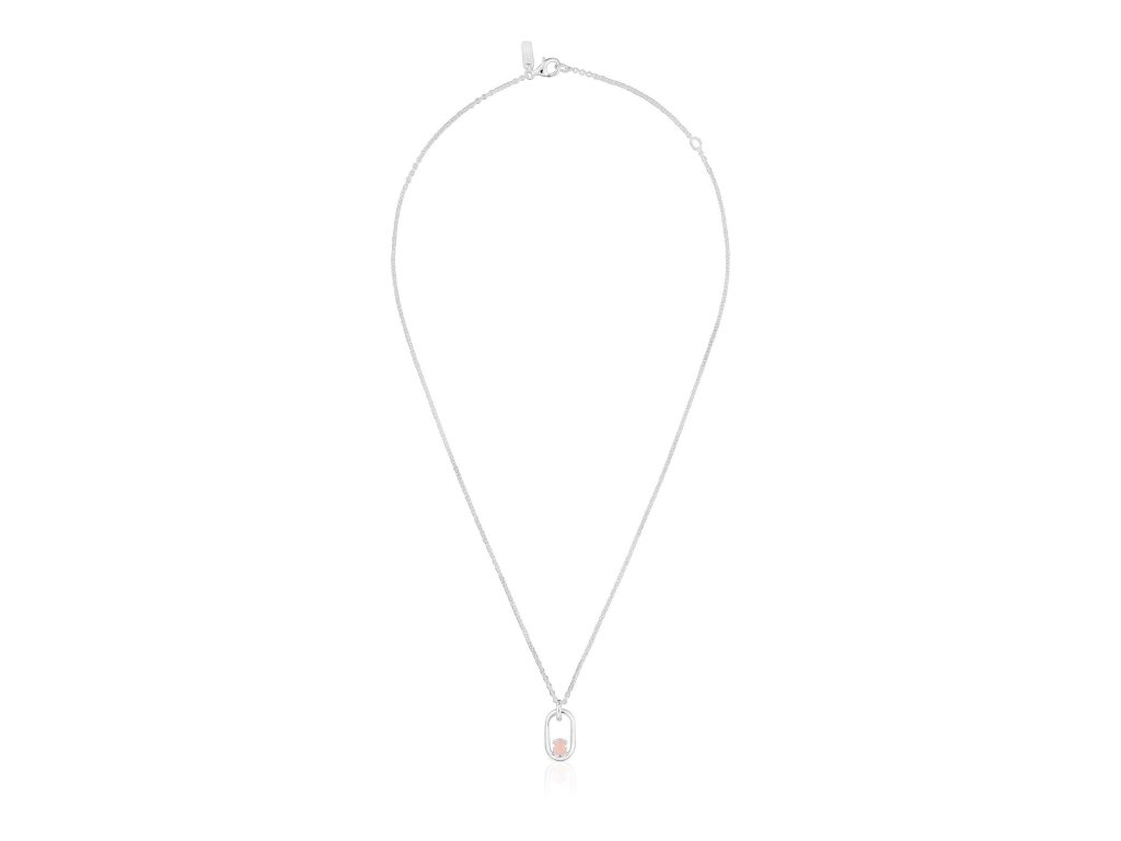 TOUS Women's necklace with a pendant of the iconic teddy bear set with rose quartz offers a delicate piece of jewelry that combines the tenderness of the stone with the playful symbol of the brand.