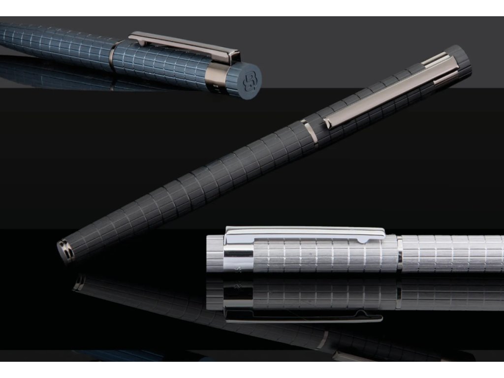 The geometric grid pattern engraved into the brushed aluminium surface creates a unique visual effect and a pleasant tactile texture. The shape of the pen is dynamic, slightly technical and yet balanced – ideal for everyday writing and stylish presentation.