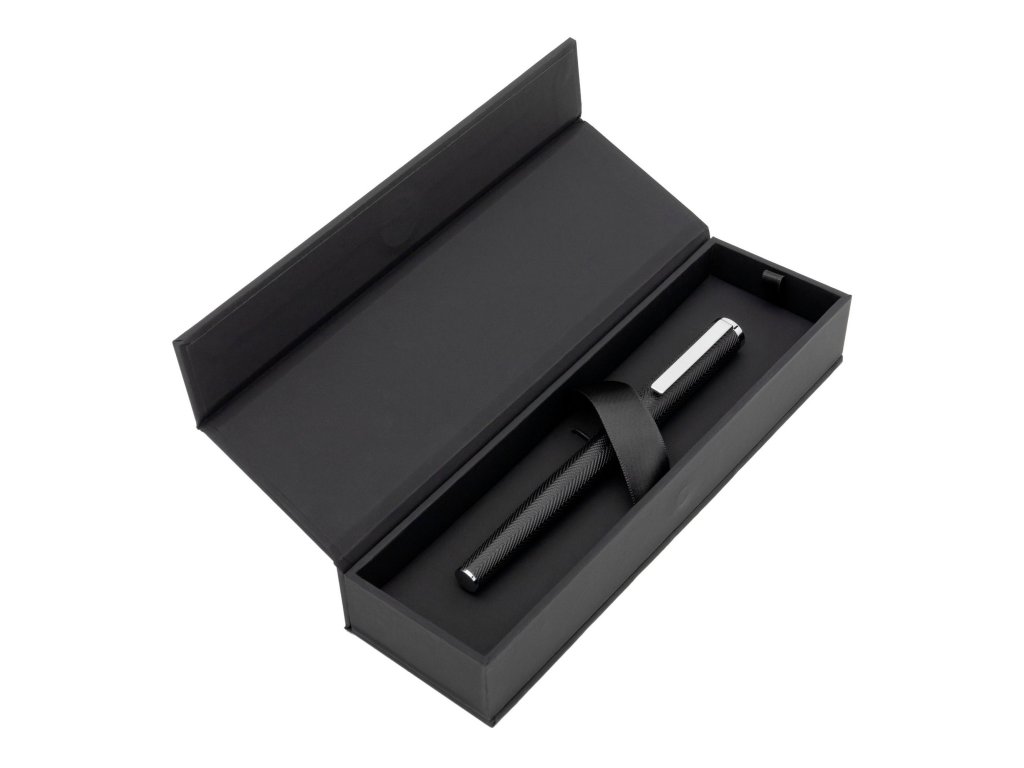 The Hugo Boss Formation Herringbone rollerball pen combines the elegance of men's fashion with precise design. The matte black body is decorated with a fine herringbone pattern, referencing the traditional suit fabrics of the Hugo Boss fashion house.