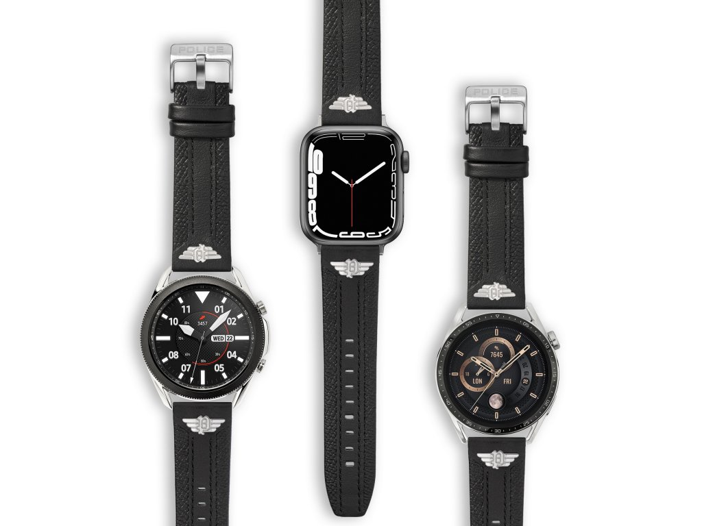This strap is compatible with both smart and classic analogue watches.. The black leather is complemented by a subtle Police brand logo, which emphasises the premium look and original character. The strap is durable, comfortable and, thanks to its 22 mm width, has universal use for many watch models.