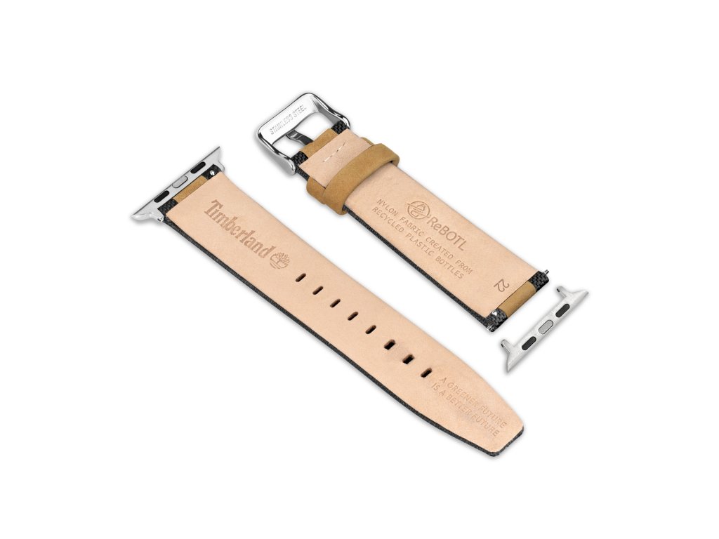 The combination of light brown leather and black ReBOLT is adorned with an embossed Timberland inscription, which underlines the original look and reference to the brand. The strap is durable, comfortable and thanks to its 22 mm width, it is suitable for a wide range of watch models. It is made in a sustainable way in accordance with Leather Working Group standards.