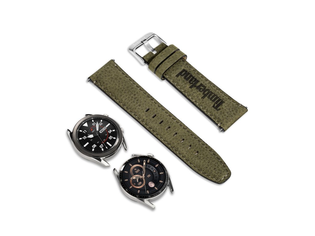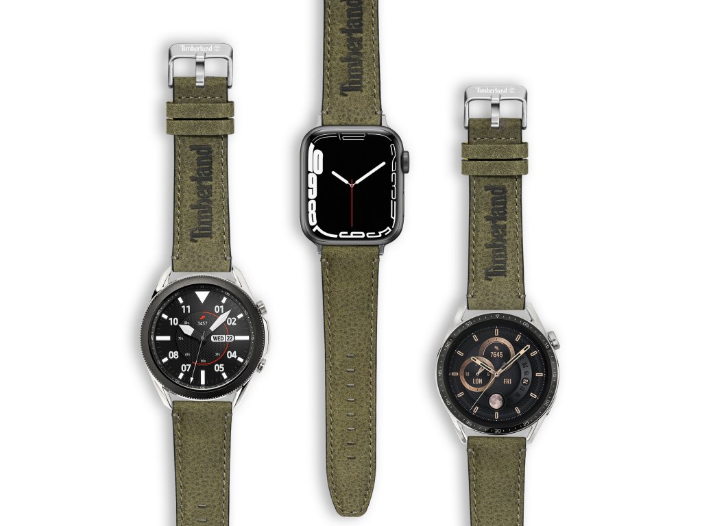 The universal Timberland Barnesbrook green leather strap with a patina finish is compatible with smart and classic analogue watches