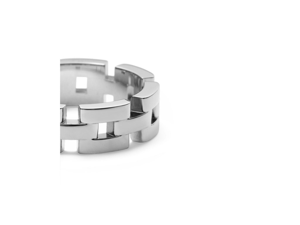 The ring's design is based on the watch-like strokes of the iconic Link collection from the same brand, but the designers have played with it by softening it thanks to the permeating gaps to create a jewel of unconventional design. Overall, the ring looks very delicate and attractive.