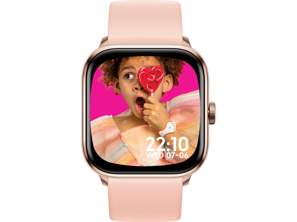 The charming design with a nude light pink silicone strap ensures comfort when wearing and a perfect fit to the wrist. The square aluminium case complements the 1.7" AMOLED display (336 × 336 px) with a 43 mm diagonal, which offers excellent readability even in direct sunlight.