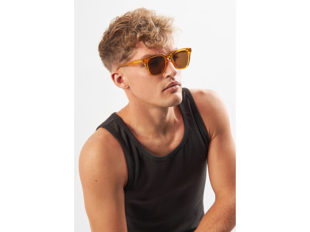 Sunglasses ECO Shades Martelli Yellow combine stylish square frames in yellow with warm, brown lenses. They are the result of a combination of modern design and sustainability principles. Thanks to their lightweight construction and softly tinted glasses, they will become not only a fashion accessory, but also an indispensable companion for every day.
